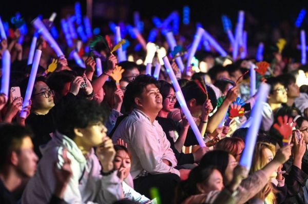 ▲10月18日晚,重庆移通学院2024年迎新晚会在该校綦江校区运动场举行。内地女歌手苏运莹倾情助阵,带来《野子》《生活倒影》等歌曲七连唱,引爆全场。记者 郑宇 摄