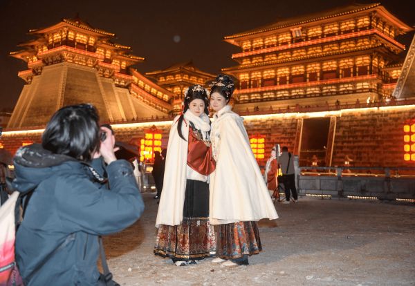 隋唐洛阳城是隋、唐、五代、北宋时期的都城或陪都。21世纪初以来,洛阳市按原有风貌复建了定鼎门、应天门等唐代标志性建筑。如今,这里已成为国家遗址公园,随处可见身着唐风华服、挽唐式发髻的游客,盛唐风韵引领时尚国风潮。