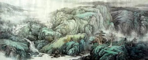 他的山水画作,构图严谨,一丝不苟,峰峦叠嶂,气势恢宏。
