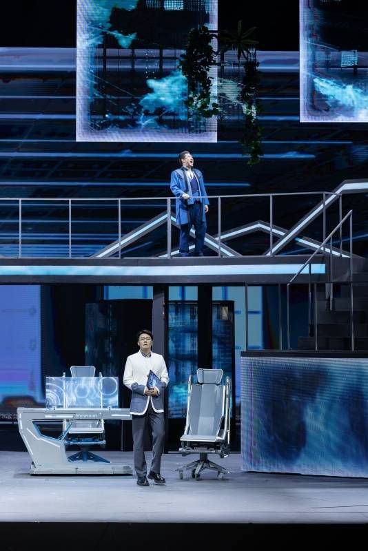 陈蔚:无论是像秦腔这样古老的艺术,还是歌剧这样传统的艺术,或者是经典内容为主的民族歌剧,我们首先要找到当代精神的价值。以《湾顶月明》为例,这个题材的背景是科技的高速发展,当初我把它定位为轻歌剧,当代歌剧界也是多年没有出现过原创的轻歌剧了,我觉得这种形式特别适合展现当代高新企业以及充满活力的年轻人的故事。作为歌剧人,要把身段放下,用轻松愉快的方式讲一个血脉相承、科技报国的大道理。所以从文本,到音乐,再到舞台呈现,我都要求以轻歌剧的方式来呈现。