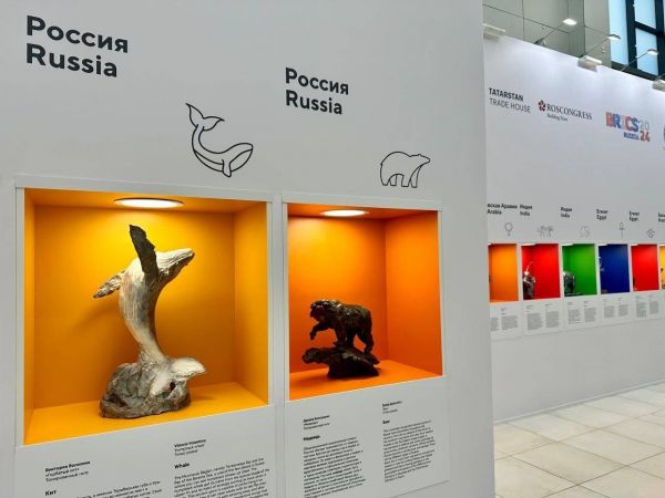 22日峰会开始当天,俄方在主会场之一的喀山会展中心开设了一场名为“民族志马赛克”的造型艺术展览。23件来自各个金砖国家的雕塑作品被陈列在会场的核心区域,作品的灵感全部来自各金砖成员国特有的自然资源。创作者是金砖国家的青年雕塑艺术家,他们中有人来自中、俄等5个创始成员国,也有人来自阿联酋、伊朗、埃及和埃塞俄比亚等去年新加入的金砖成员国。