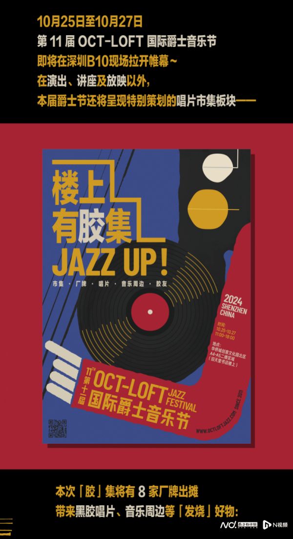 除了音乐演出,本届爵士音乐节还设置有讲座及放映活动,进一步拓宽国内外音乐文化传播与交流的维度。而在爵士节举办期间,一场名为“JAZZ UP! 楼上有‘胶’集”的市集活动,也将在华侨城创意文化园北区A4-A5栋二楼平台上举办,别处难寻的黑胶唱片、周边、创意手作等独家好物,等待同好发掘。