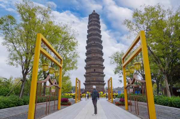 来开封旅游的朋友,一定要打卡这座历经千年风雨、依然屹立不倒的“铁塔”!这座塔始建于北宋皇祐元年(1049年),是开封仅存的两座北宋古建筑之一,900多年来见证了开封的兴衰起伏,历经洪水、暴风、地震的冲击,依旧巍然屹立。因外观颜色如铁,便有了“铁塔”之名。塔身使用琉璃砖砌筑成八角十三层,结构坚固,美得让人叹为观止!