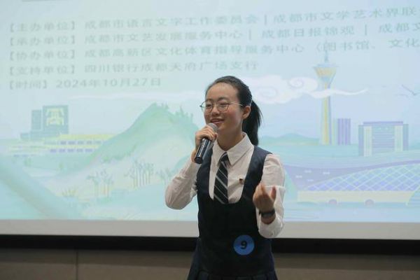 10月27日,成都市全民朗诵大赛线下决赛在高新区图书馆举行。本次活动由成都市语言文字工作委员会、成都市文学艺术界联合会主办,成都市文艺发展服务中心、成都日报锦观、成都市普通话水平测试中心等单位承办,旨在为广大朗诵爱好者搭建展示才华的舞台,以朗诵为媒,探寻城市生长脉络,传承弘扬中华优秀传统文化。据悉,决赛共评出一等奖15名,二等奖19名,三等奖22名。
