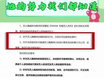以前总说鞠姐没代言,现在才知道,真不是粉丝自找苦吃,而是确实很艰难。丝芭传媒起诉鞠婧祎,真是让人唏嘘。 #丝芭传媒# #起诉#特别声明:以上文章内容仅代表作者本人观点,不代表新浪网观点或立场。如有关于作品内容、版权或其它问题请于作品发表后的30日内与新浪网联系。相关知识