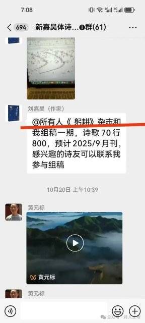 就在这几家刊物发表“声明”没多久,“网名”为“刘嘉昊”的所谓“代理征稿人”,再次在微信群替老牌刊物《星星》杂志与省刊《长江丛刊》等众多刊物“征稿”,涉及的刊物,也再次发布声明进行否认。