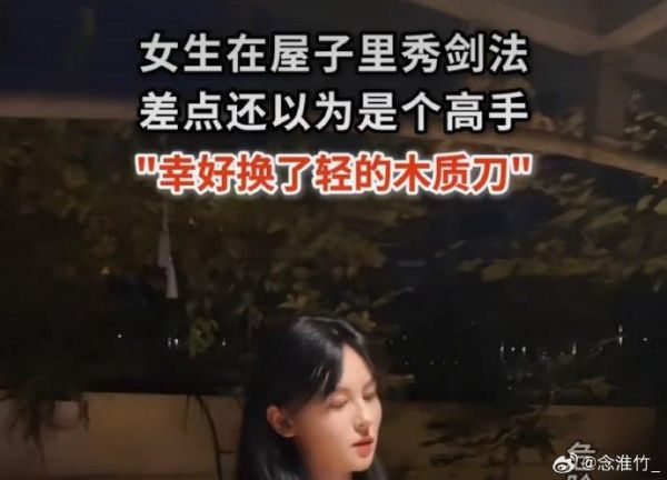 女子穿便装练刀,幸好拿了把木制道具刀, 一剑开天门…