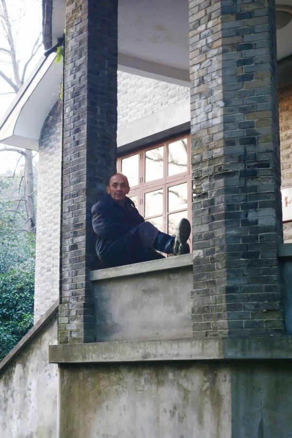 2012年,林风眠外孙杰拉德参观外祖父故居玉泉别墅时,仿照外公留影。