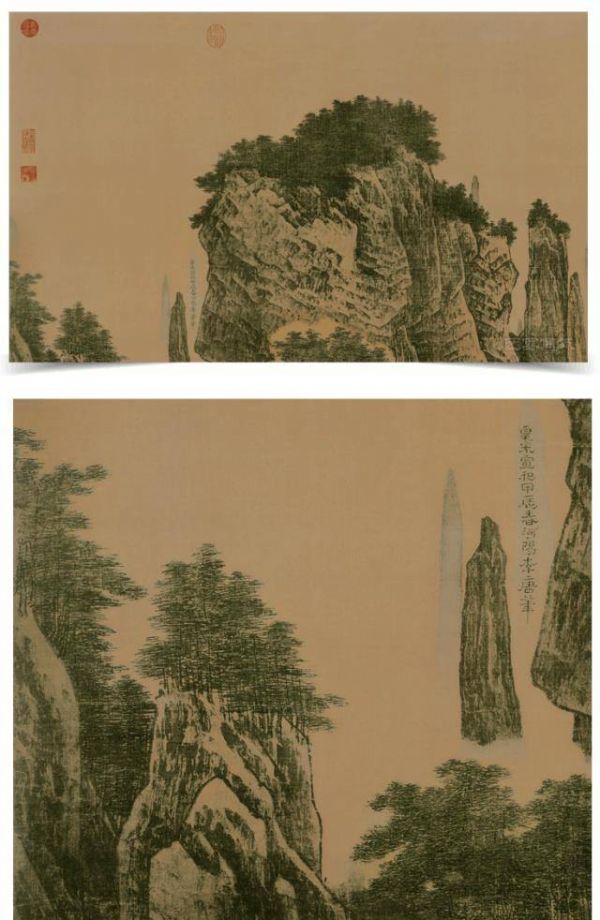 人们彷彿听到耳机传来的松针摩娑的微微声响。主山两侧,山石间,落有几丛松,形小而连贯,这才叫“松林”。这才叫生命力。