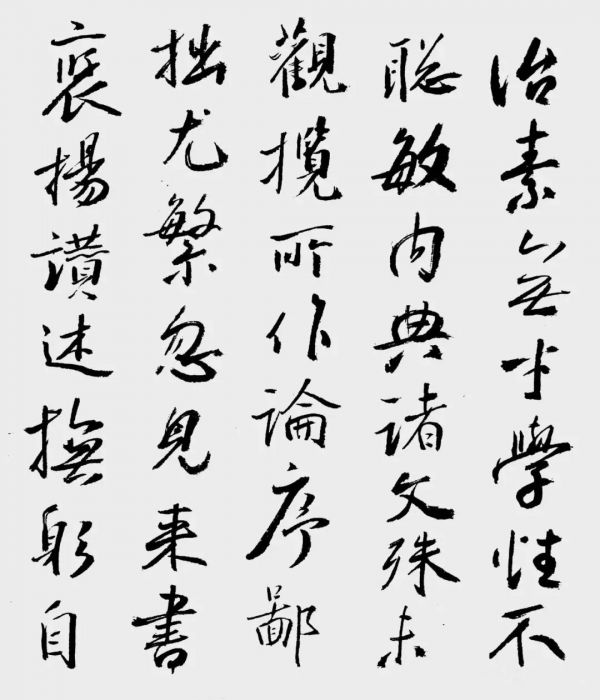再则是墨。古人研墨,故深浅,浓淡自如。今人研墨者已甚少,大多是墨汁加水。水加得多少,是一学问,过少粘厚枯滞,拖不动笔,过多则肥烂稀薄,字无筋骨。因此首先得调好墨的浓淡度,笔蘸上去要由尖至根,不要一下蘸得过多过饱。王字多在笔尖上做文章,墨的烂、枯皆不行,故临习者要重视这个问题。