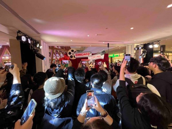 此次路演活动吸引了众多音乐剧爱好者。在万象城站,来自宁波大学Notes&Beats音乐剧社团的同学,上台进行了剧中的舞蹈和歌曲模仿表演。