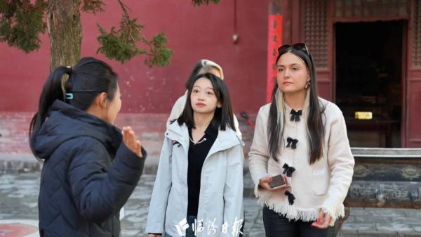 伊莲娜与其经纪人一进入广胜寺,便被精妙绝伦的飞虹塔所震撼,她们纷纷驻足,拍照留念。在大雄宝殿门前,两人亲手写下祈福带,挂在千年古柏下。“飞虹塔非常漂亮,参观之后我了解到很多中国的历史和文化。”伊莲娜在接受采访时表示,“广胜寺是一个大自然与历史紧密相连的地方,来到这里我感到心里非常平静。”