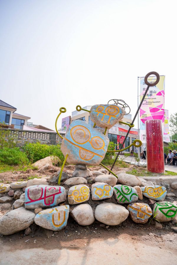 如今,南山村村口灰扑扑的石头围墙变成了一面丰收墙,大家把石头涂画成白菜、柿子、大桃等果蔬的样子;清华美院在胡同安装了交互感应装置,夜晚有人走过,就会投射出一只奔跑的夜光兔子;北京林业大学用玻璃饮料瓶复现了村里曾经出土的文物石马,名为《马放南山》……环境变好了,加上南山艺术季的带动效应,村民的柿子、山里红、核桃也都卖出去了,乡村建设还让村里的石匠、瓦工有了在家门口挣钱的机会。