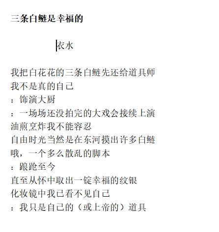 这是诗人衣水的诗歌《三条白鲢是幸福的》:
