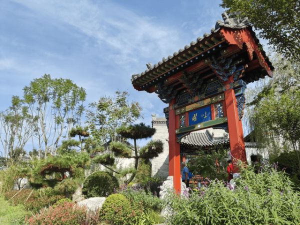展园主要以山西大院形式展示晋式民居体验区,全院建筑以传统中式房屋形式搭建,建筑范围超过总院区三分之一。山西大院是中国民居建筑的典范,向来有“北在山西,南在安徽”之说。皖南民居以朴实清新而闻名,晋中大院则以深邃富丽著称,称得上北方地区民居建筑艺苑中的一颗璀璨明珠。太原清代传统民居院落规模不一,中轴对称,有“口”字形、“日”字形、“目”字形等多种类型。本项目因地就势,采用“日”字形院落,基本构成元素主要包括院门、过厅、正房、配房等建筑物。空隙处辅以院墙,形成对外封闭、对内敞开、功能齐备、墙高院深、外雄内秀、布局合理的居住形态。主要以西府海棠和竹子,主要来烘托北方大院的园林景观。