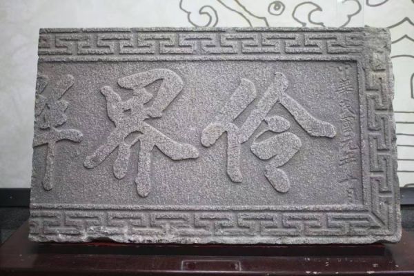 这块石碑在1912年上海伶界联合会成立时立于该会会址。原由两块黄灰色花岗岩石拼接镶成,长202厘米,宽61厘米。上阳镶橫书“伶界联合会”。石匾四周围饰十厘米宽之阴镶回纹图案。文革后期迁到蓬莱公园内西墙角之假山上,当作阶石。2005年6月征集入馆。(海艺存珍——上海市文化艺术档案馆馆藏珍档特展)