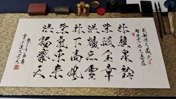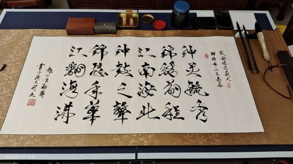 刚开始学习书法,张伟强先生博采众长,先学习了草书体灵动潇洒,后又深入研究了魏碑体的刚劲有力,行书体的行云流水,隶书体的古朴典雅,楷书体的端庄规范。持别在学习行书体中,他更是得益非浅,并逐渐形成自己独特的行书风格。张伟强先生的行书风格融入了草书和魏碑体的持点,时而刚劲有力,时而挥洒自如,时而飘逸潇洒,时而出神入化。这种独特的风格不仅让现代鉴赏者看得懂,又耐看悦目,更展现了他对书法艺术的深刻理解和独到之处。