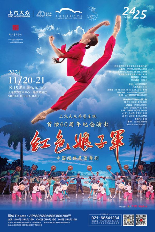 11月20至21日,中央芭蕾舞团即将再度造访东方艺术中心,献演“镇团之宝”《红色娘子军》,纪念作品首演60周年。芭蕾舞剧《红色娘子军》曾两次亮相东艺,广受赞誉。值此首演60周年之际,中芭即将再现巾帼传奇,带领观众重温红色经典,回望峥嵘岁月。