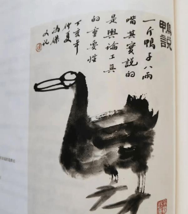 一是形式上的与众不同。这是一本关于吃的书,但不是食单。字里行间弥漫着食物的味道,却不是纯粹的吃。《说食画》是文与画两相参照,可当画看,可当书读,食图引路,美文相随。别出心裁,妙趣横生,吃与画与情相互交融。文与画相互补充又各自独立,每幅画上又有别具一格的文字介绍,三言两语,极富哲理。如他画的四个红萝卜扎在一起,红绿相配,本无新意,但旁边的题字,引人深思。"四条汉子,团结也不一定有力量"。还有他画的萝卜白菜的题字是"求菜于田中,得诗于书外"。