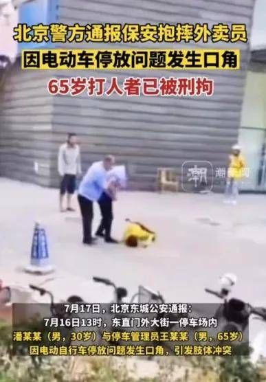 保安更加不依不饶,直接将外卖员抱起,狠狠地摔在了地上。