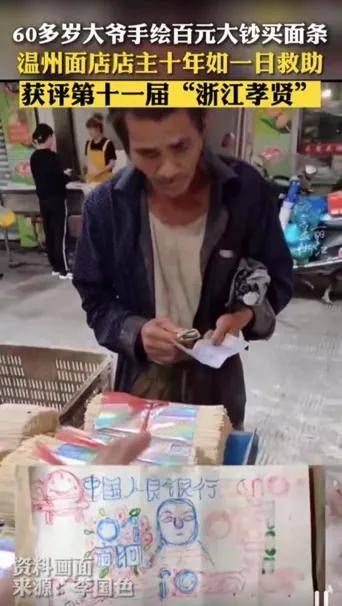 可老板看了看老人衣服上的破洞,什么话也没说,默默装好面条递给了老人。