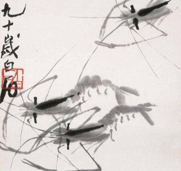 齐白石从小生活在水塘边,常钓虾玩,对于虾,齐白石再了解不过。到了青年时期,齐白石开始画虾。40岁以后,齐白石临摹过徐渭、李复堂等明清画家画的虾。63岁那年,齐白石画虾已达登峰造极的地步,但齐白石觉得虾仍不够“活”。随后,齐白石便在碗里养了几只长臂虾,放置于画案,每日细心观察,因此齐白石画虾之法改变,方才有了后来的代表作《虾》。