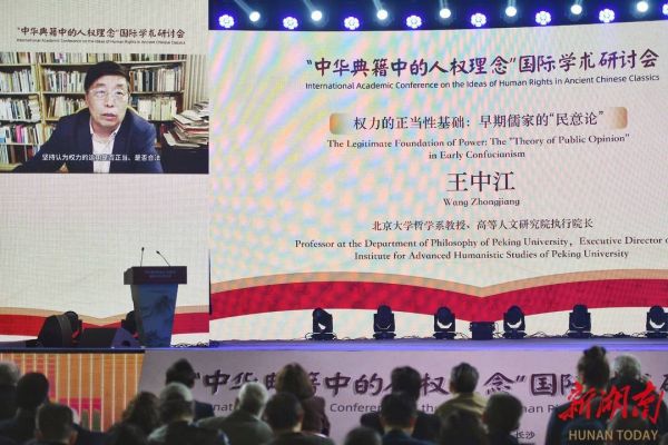 “在儒家政治思维和政治学说的研究中,我们一直关注的主要是它的‘民本论’,在很大程度上忽略了早期儒家就发展出来的‘民意论’传统。”11月20日上午,在“中华典籍中的人权理念”国际学术研讨会上,北京大学哲学系教授、高等人文研究院执行院长王中江以视频形式发表主旨演讲。
