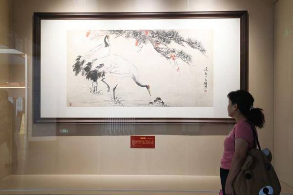 旅客在第4候车室观赏 王雪涛的《松鹤图》