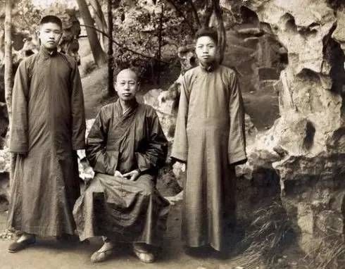 李叔同与弟子刘质平(左)、丰子恺(右)