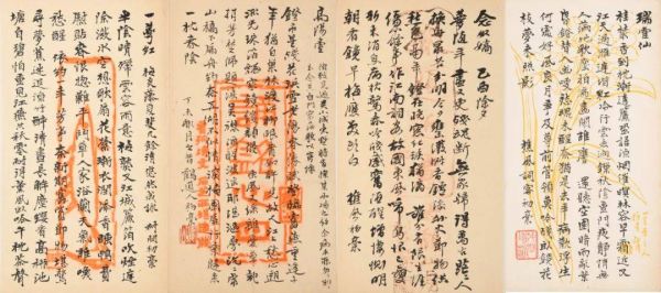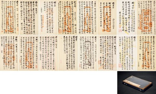 提要:此册郑氏词稿共收十六帧,有词《高阳台》《浣溪沙》《思佳客》《一梦红》《彩云归》《踏莎行》《念奴娇》(二首)《夜半乐》《瑞鹤仙》《拜星月慢》《庆春宫》《摸鱼子》《梦芙蓉》《水龙吟》(二首)。书迹均为郑氏亲笔,所用均为花笺。