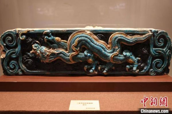 图为展出的明代三彩龙凤纹琉璃脊。薛蒂摄