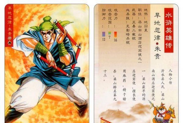 地煞星中,朱贵绰号旱地忽律,在梁山负责开酒店兼打探消息,属于情报头领。