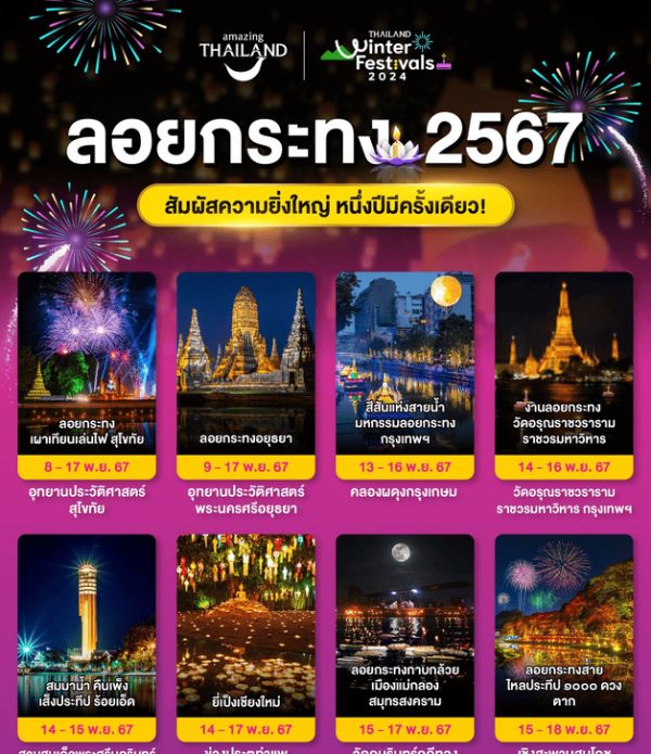今年,泰国水灯节将于11月15日盛大举行,但庆祝活动并不会仅限于这一天,而是会在整个11月中旬持续进行。曼谷作为泰国的首都,自然是庆祝活动的中心,但如果你想要体验更加地道的水灯节氛围,清迈、素可泰、普吉等旅游城市同样值得一游。