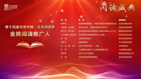 第十四届书香中国•北京阅读季阅读盛典举办,单霁翔、六小龄童等获评金牌阅读推广人