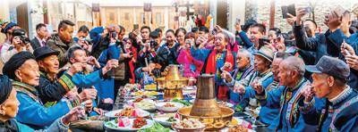 羌年期间,四川阿坝藏族羌族自治州理县群众吃坝坝宴。人民日报记者 宋豪新 摄
