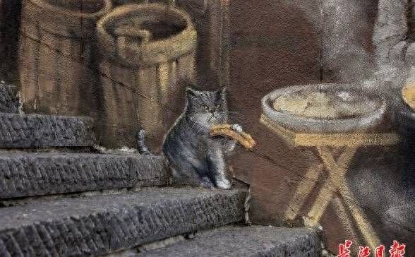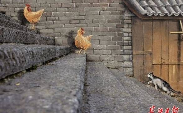 除了这些生活场景,墙画中还有许多小动物的身影。一只小猫懒洋洋地躺在屋檐下晒太阳,享受着悠闲的时光;一只小狗则欢快地奔跑在街道上,追逐着蝴蝶和蝴蝶翩翩起舞。这些小动物的出现,不仅为画面增添了趣味和生机,更让人们感受到了老汉口生活的温馨与和谐。