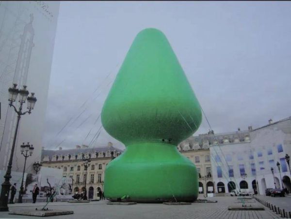 审美低俗化:2014年在巴黎市中心的旺多姆广场,竖起了一个美国“艺术家”的充气肛塞(图4)。2015年在凡尔赛宫的花园,展览一整年装置“王后的阴道”(图5)……