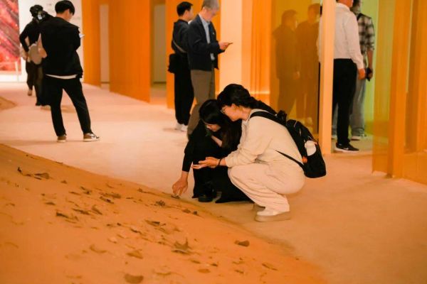 展览中,最引人注目的展品莫过于“自然”展区中的鸣沙香山。整座鸣沙香山坐落在展区中心区,艺术家通过在山形基座上覆盖敦煌鸣沙山的山沙,让参观者身临其境,仿佛真正步入了敦煌,感受鸣沙山上的一草一木。