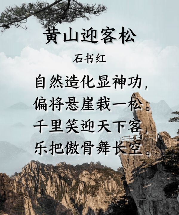 石书红老师的《黄山迎客松》,以清新流畅的语言和形象生动的描绘,勾勒出黄山迎客松这一壮美景象,同时赋予其深刻的人文寓意与情感内涵。这首诗不仅仅是在赞颂自然之美,更蕴含了对迎客松“迎天下客”的大气与热情精神的礼赞,充分体现了诗人对自然与人文的双重关注。