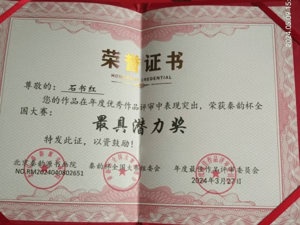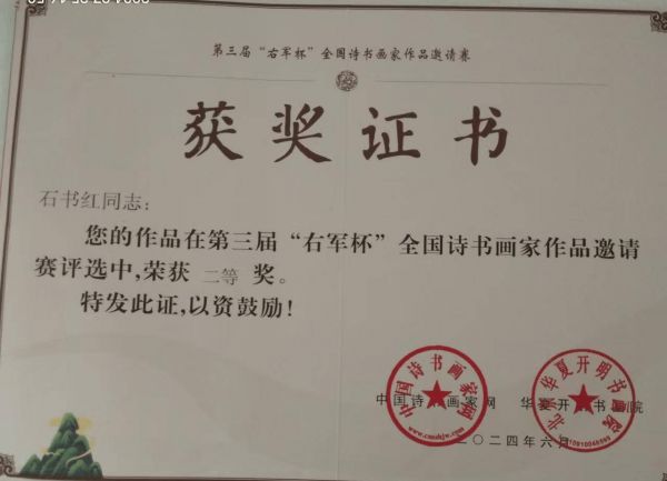 石书红先生荣获「墨缘堂艺术大赛」诗词一等奖