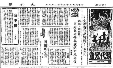 1947年《大公报》刊发琼瑶第一篇小说《可怜的小青》