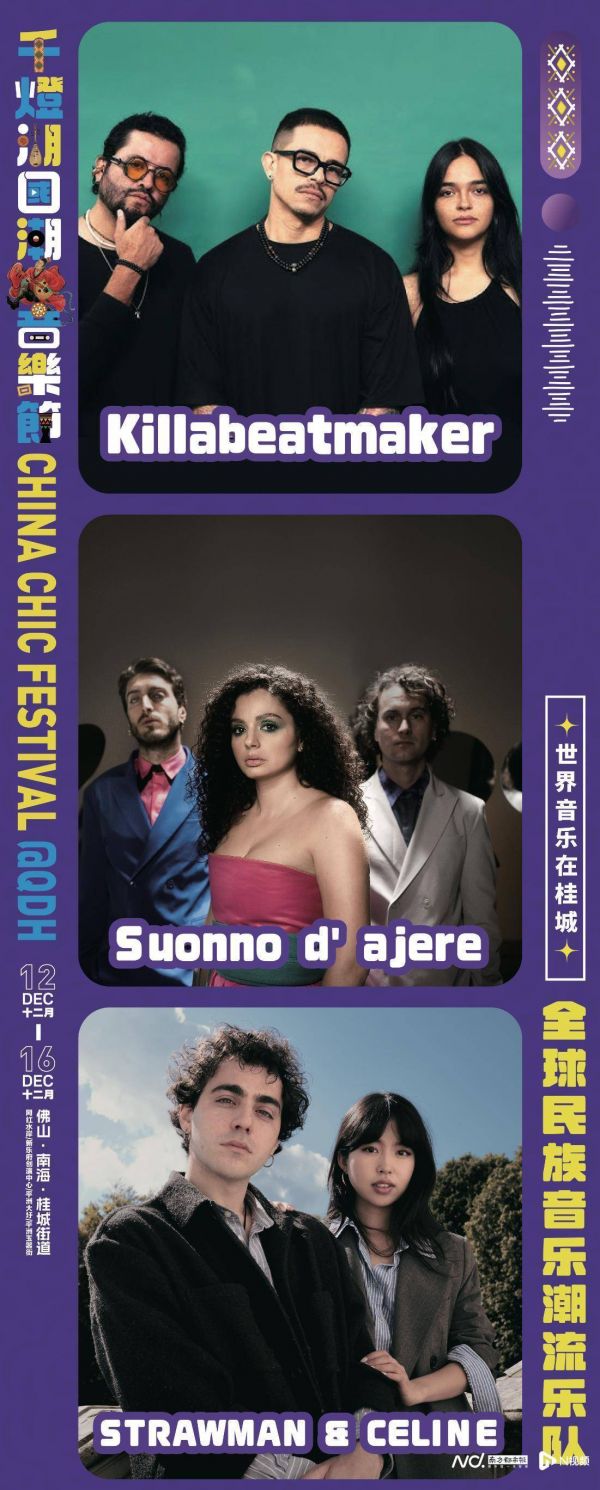 本次参与的国内音乐人则集中在民族元素的乐队Kawa、马帮、弓藏竹马&顾忠山、金佛和朋友们以及点水南乐、嘻琵俱乐部、TAIGA等民乐电子的跨界组合,还有具有岭南特色的新生代乐队悶饼MOONBAND和肖烔。而除了音乐现场演出,还有论坛交流、专题讲座、大师班、非遗巡游、圩市快闪等,分散在网红水岸、新乐府创演中心、平洲大圩等5个室内外演出空间。卢中强说“新乐府”十年致力于中国民乐的世界音乐表达,到2024年终于可以在佛山桂城实现做世界音乐音乐节的初衷。