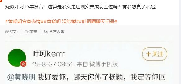 梦女文学?叶珂被扒出15年前喊话黄晓明:哪天你休了杨颖,我定等你回来娶我