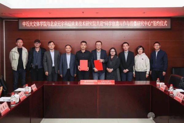 活动结束后,刘慈欣代表北京元宇科幻未来技术研究院与中石大签署框架协议,共建“科学创意写作与传播研究中心”。该中心将结合中石大在工科教育中的卓越优势及北京元宇科幻未来技术研究的创新资源,在中国科学技术协会、中国作家协会、北京市科学技术协会等机构支持下,形成跨界合作的联动机制,推动学科间的深度协作与优势互补,用科幻激发科学的想象力,实现科研创新、人才培养和科学传播的协同进步,为服务国家重大战略、促进经济社会发展贡献智慧与力量。