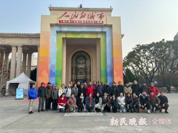 图说:文艺工作者代表们走进“人民的城市”主题展合影。陈佳琳 摄(下同)