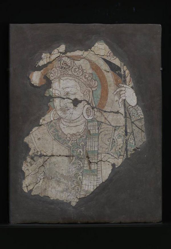 “驼铃声响——丝绸之路艺术大展”文物展品“毗沙门天残像上部壁画”展览现场