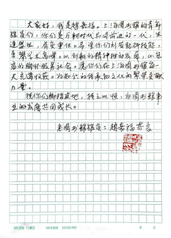 赵嘉福给青年馆员的寄语