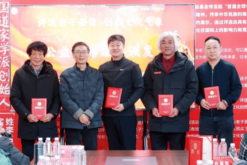 主持人代表与会嘉宾感谢捐赠人和捐赠企业对于老子文化公益基金的支持,由中华社会文化发展基金会执行副秘书长蒋晔先生为吉林彤牛生物科技有限公司等公益捐赠企业及捐赠个人授予了捐赠荣誉证书,他们的公益捐赠为活动的顺利开展提供了有力的支持与保障,也彰显了企业和个人的社会责任与文化担当。