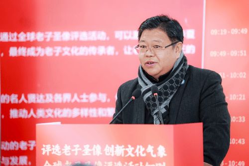 随后,中华社会文化发展基金会执行副秘书长兼老子文化公益基金监事蒋晔先生上台致辞,“上善若水,水善利万物而不争”,对活动表达了秉持包容、推动老子文化传承的期许,进一步明晰了活动以及老子文化公益基金前行的方向,让大家对此次活动承载的文化使命有了更为深刻的认知与感悟。蒋晔先生介绍了中华社会文化发展基金会的创立、发展及初心。中华社会文化发展基金会作为文化基金会,从创立伊始,就立志于要做留下来的事情,而不是其他基金会都在做的事情。基金会很重要的一个目标,就是要建立中华文明的标志体系,中华文化符号的象征体系,而老子恰恰就是中华文明的重要符号之一。多年来,基金会一直围绕着这个目标做了与之相关的工作,并落到实处。由老子圣像的评选树立文化新气象,意义重大且深远。积极响应习主席提出的人文经济学,把老子文化文创做好,带动文旅、文化产业的发展,让优秀的中国文化创造出一流的世界财富!