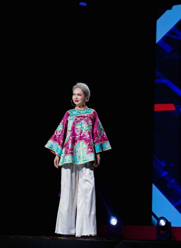 舞台之上,模特们化身古韵精灵,轻盈步伐踏出历史回响,婀娜身姿演绎传统风姿。在聚光灯的追逐下,拾柴华服逐一展现,刺绣的花鸟呼之欲出,锦缎的光泽流转生辉,一场视觉的绮梦就此展开。当终场音乐响起,惠然女士从容登台谢幕,这一刻,掌声雷动,是观众对这场大秀的由衷赞叹。